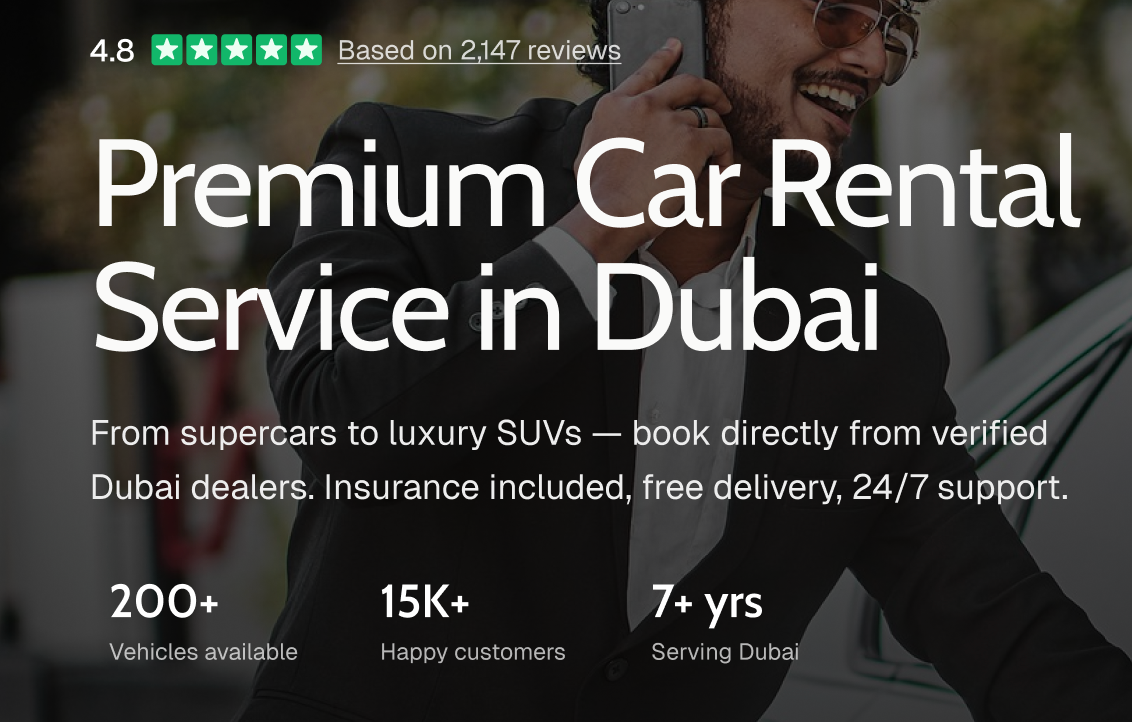 Traditionally, rental companies block a security deposit (AED 1,000–5,000) on your credit card. With no-deposit rentals: